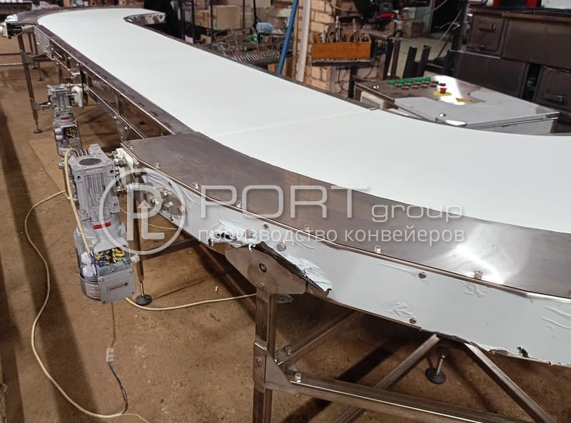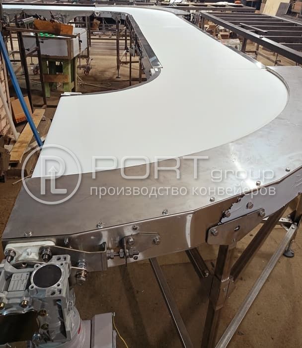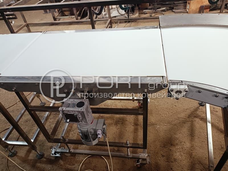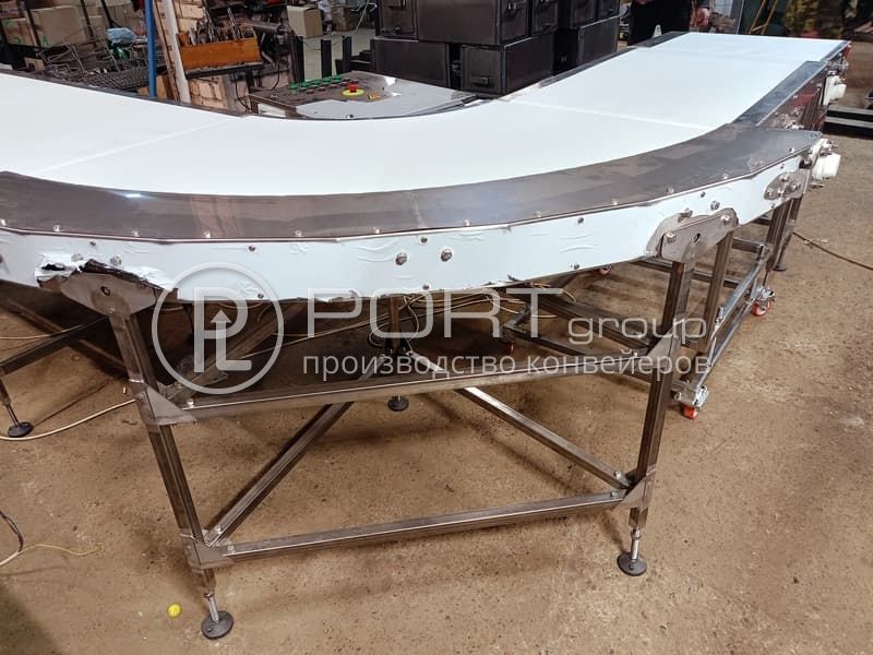 Конвейер с модульной лентой для транспортировки сахарных кубиков