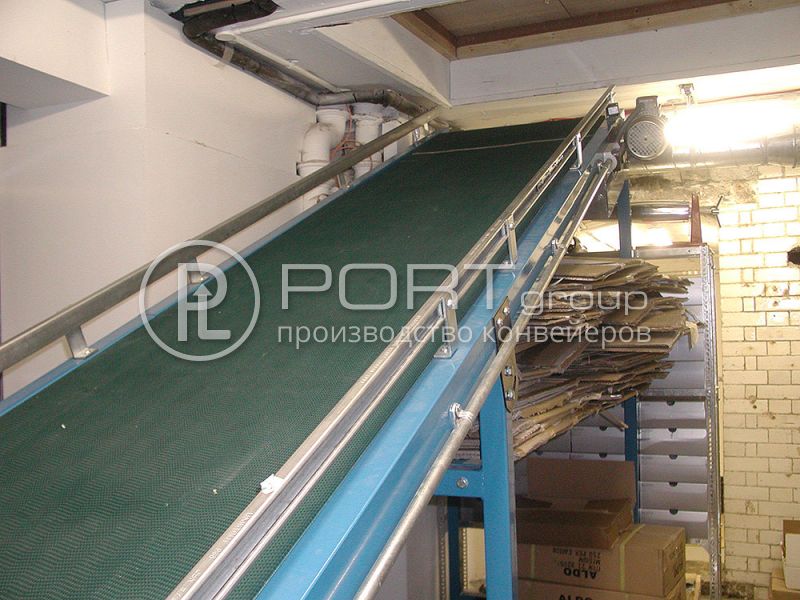 Все фото (2)Наклонный конвейер для транспортировки коробок на складе хранения