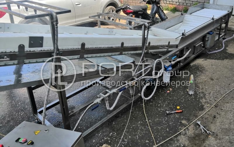 Для компании из г. Екатеринбург произведено оборудование для глазировки рыбы льдом. В составе: конвейер, ванна, вентилятор, увлажнитель. Конструкция быстросъемная и легка в обслуживании. Лента модульная открытого типа, с поддоном для сбора влаги.