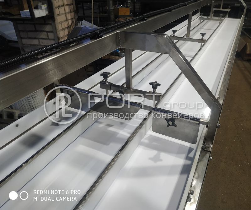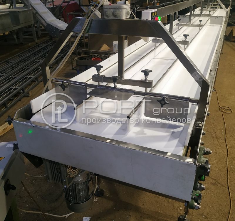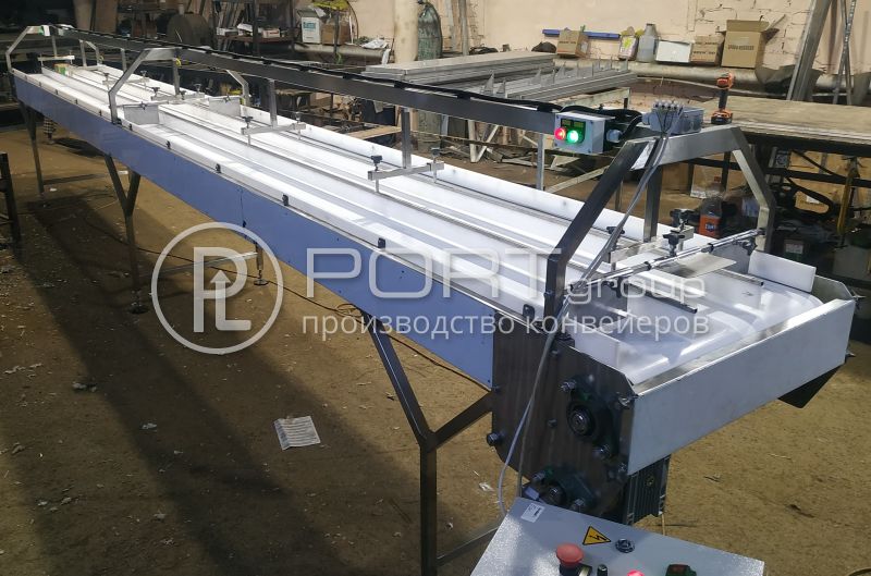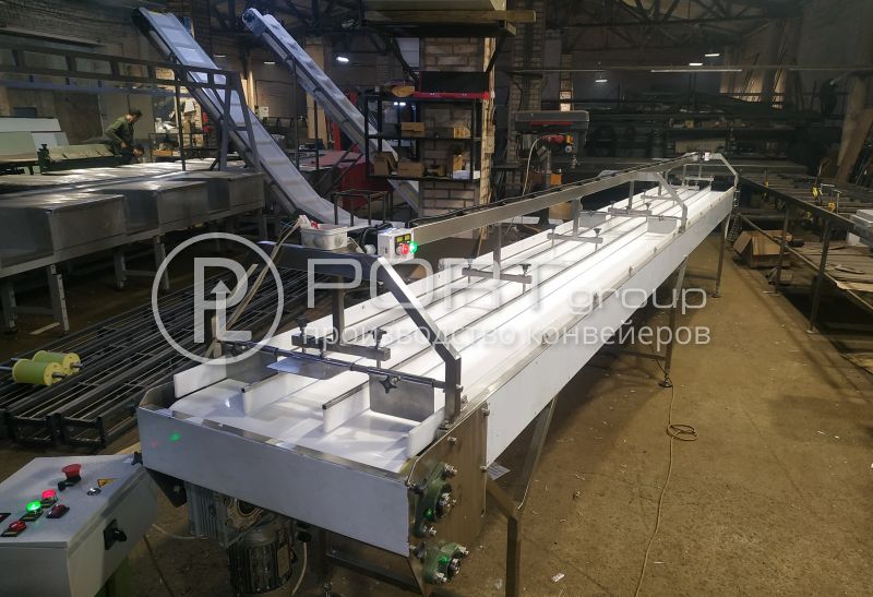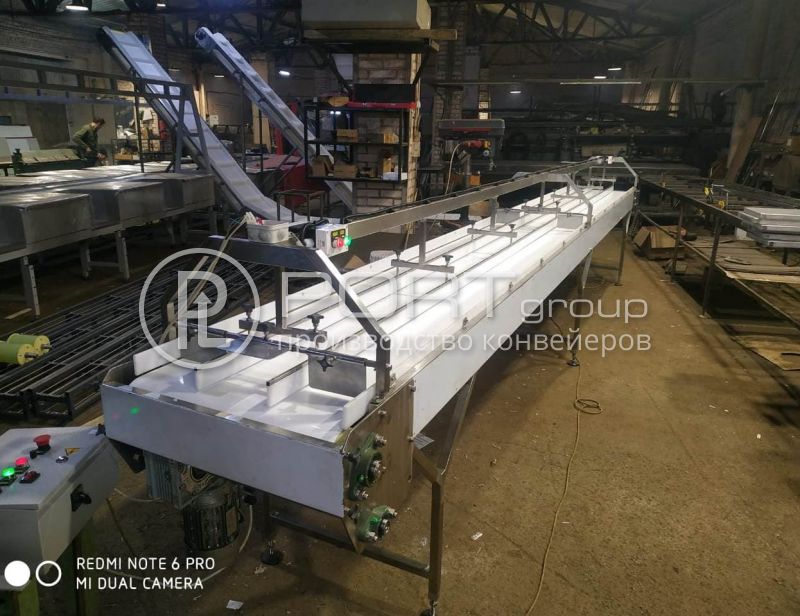 Ленточный конвейер для перемещения и наполнения лотков с едой